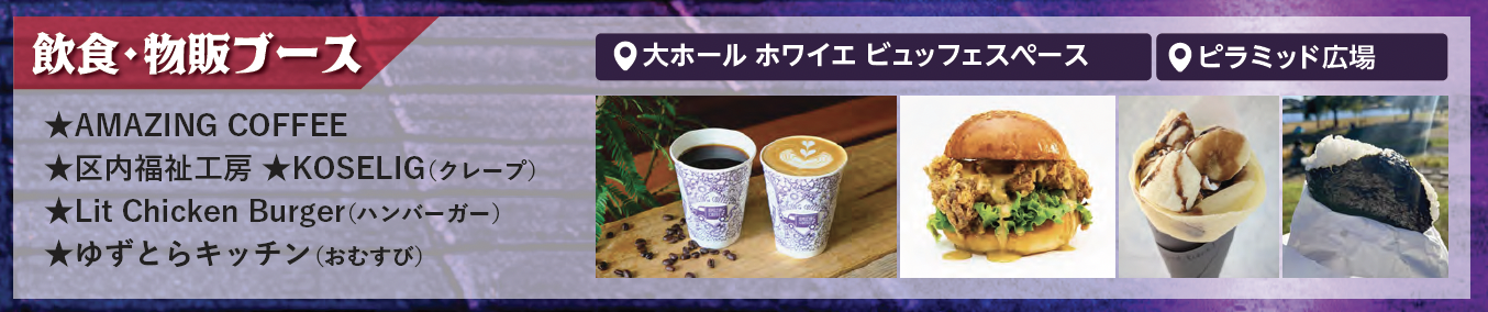 ・食事は、大ホールホワイエまたは屋外で行い、大ホールや小ホール内での食べ歩きはご遠慮ください。